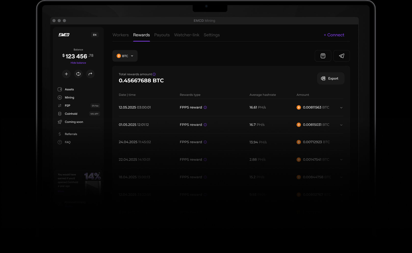 Up to 14% APY via CoinHold program (availability and rate may vary)